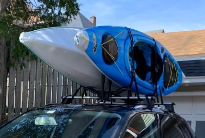 This versatile carrier lets you transport 2 kayaks or sups on your roof rack crossbars.